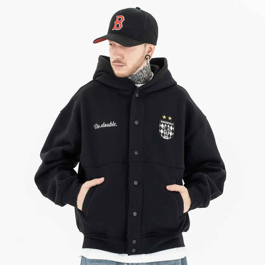 Men's Buttoned Cardigan Hooded Sweatshirt with Embroidery for Both Men and Women