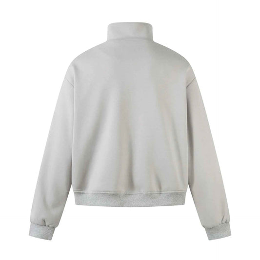 Beige Pineapple Textured Half Button Collared Sweatshirt