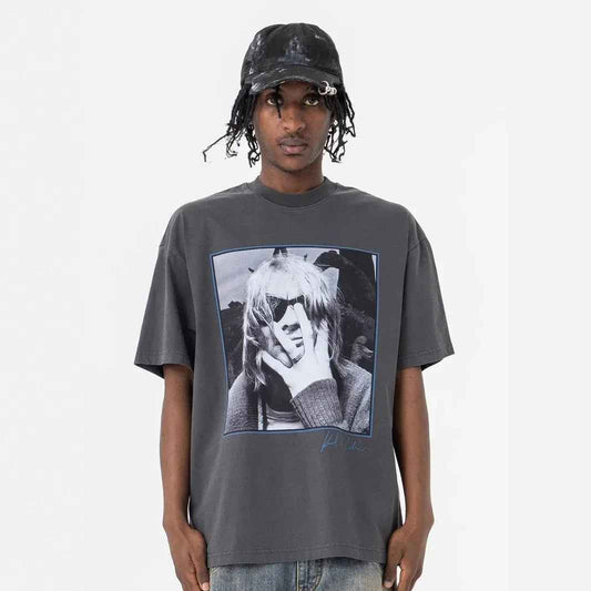 Portrait Print Vintage Short Sleeve T-Shirt for Men