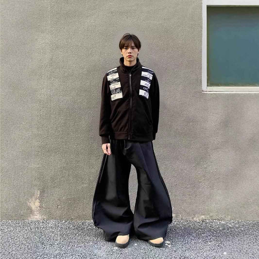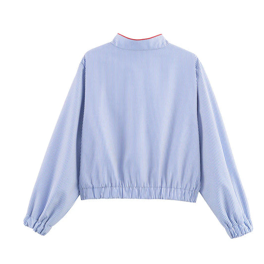 Striped heart-shaped patch with zipper pocket jacket